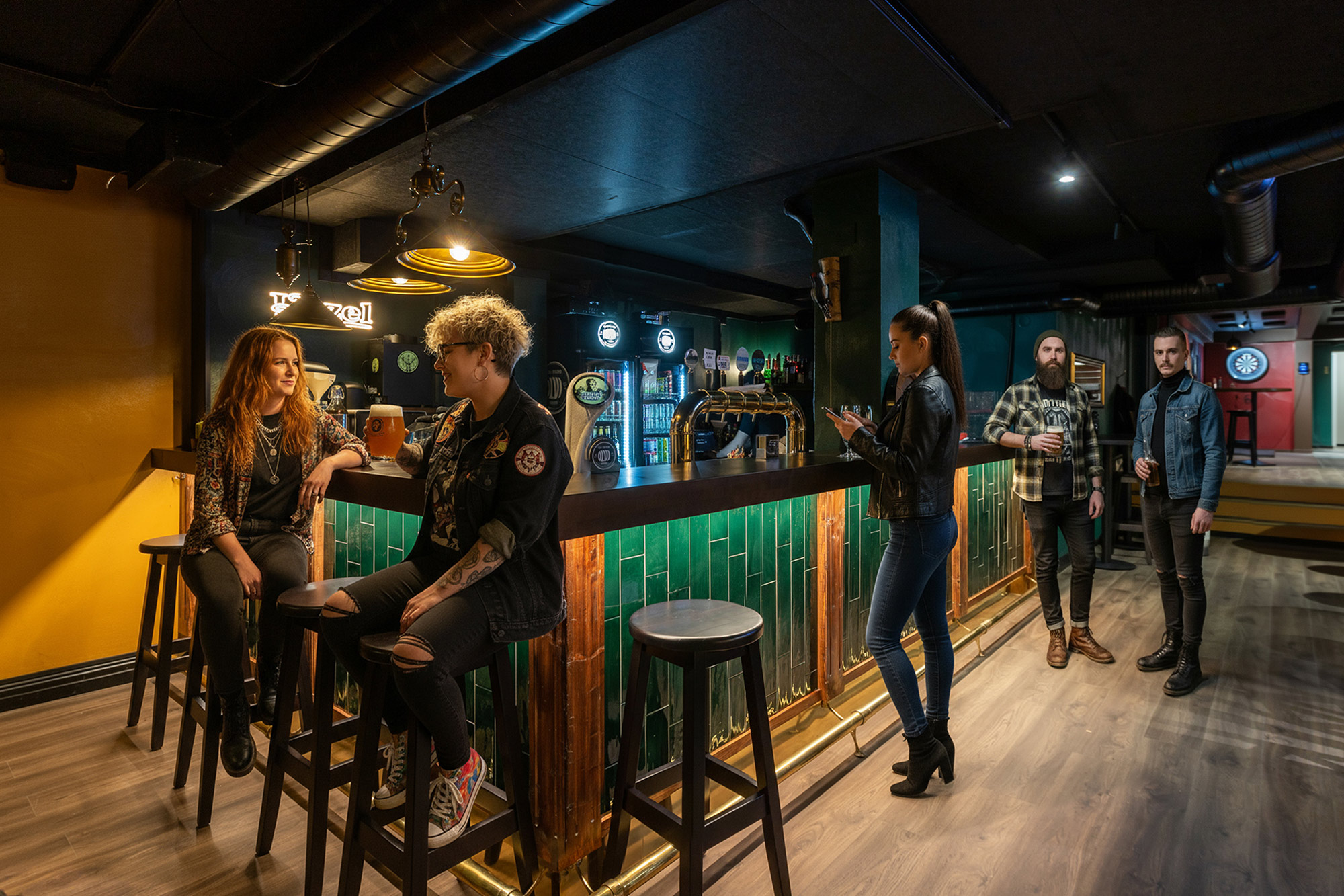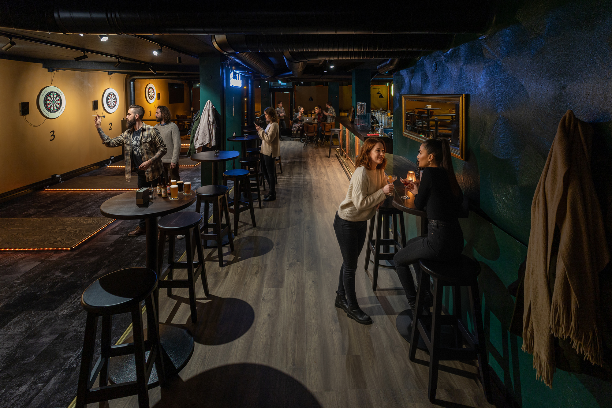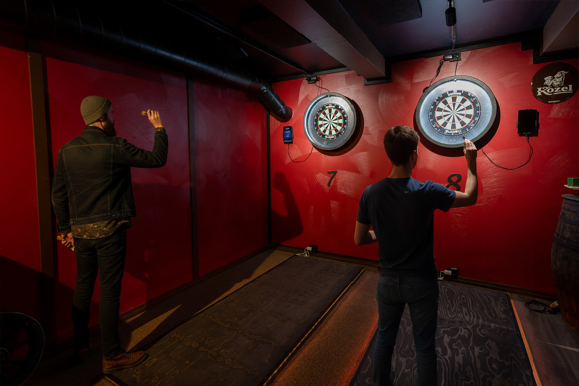 Kahdeksan darts-taulua ja muita pelejä. Laaja juomavalikoima sekä pienpanimo-oluita.