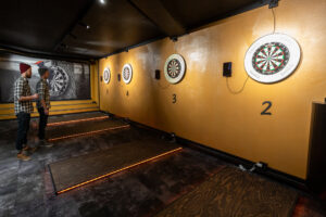 Tilavassa Palokärjessä on kahdeksan darts-heittopaikkaa sekä padit pisteenlaskua varten.